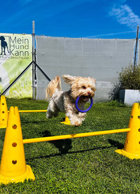 Aber keine Sorge, falls dein vierbeiniger Teampartner aus gesundheitlichen Gründen nicht springen kann! Für jeden ist etwas dabei, denn wir setzen z. Bsp. Hoops zum Durchlaufen ein, sodass keiner zu kurz kommt.